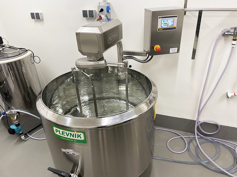 “Zakład wyposażyliśmy w kocioł serowarski Plevnik SKH 300 EL PRO. Kocioł wykonany w opcji z adaptacją do otworu drzwiowego 80 cm – wymagał od nas zdemontowania układu hydraulicznego, stelaża i głównego ramienia z napędem, reduktorem oraz przekładnią planetarną oraz wniesienia do mleczarni na boku. Cała procedura – jak zawsze – udała się w 100%.” – bezpośredni cytat z serowar.pl, któremu dziękujemy za instalację. Praca z mlekiem to teraz ogromny komfort. Przy pomocy tego kociołka przeprowadzamy proces pasteryzacji mleka po którym następuję zaszczepianie kulturami bakterii, dodawanie podpuszczki oraz obróbka skrzepu wymagana dla danej technologii.